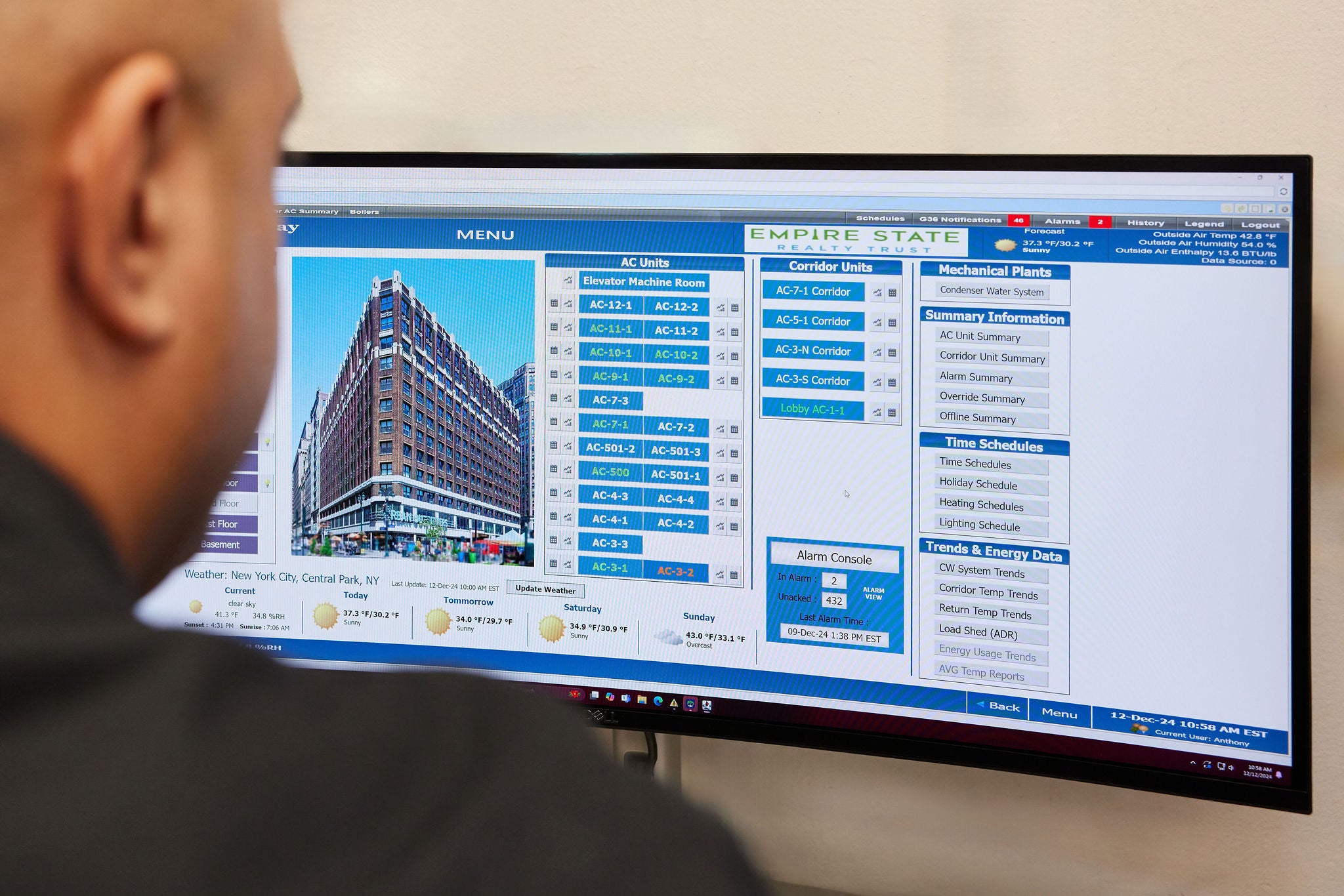 Across ESRT properties, advanced systems are used to monitor energy performance, test new efficiency technologies, and optimize building operations in real time. These investments support predictive maintenance, reduce downtime, and improve consistency across the portfolio.