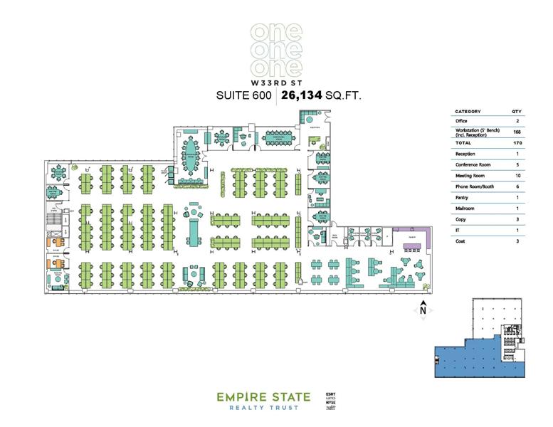 Eligible for ESRT Turnkey Suites services – full scale architectural, furniture, IT and move services from Empire State Realty Trust.
