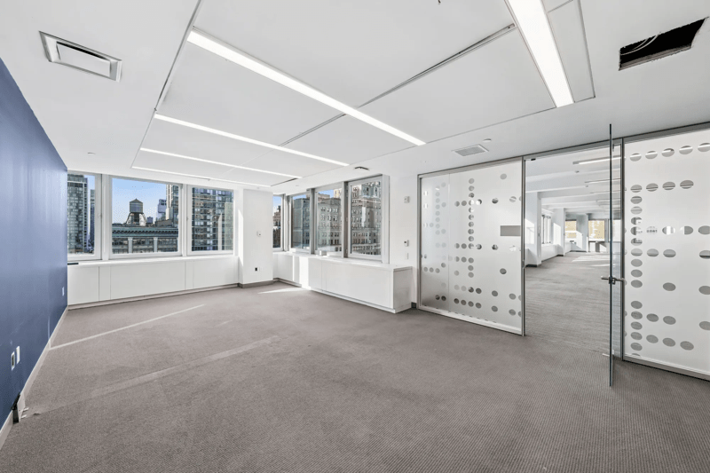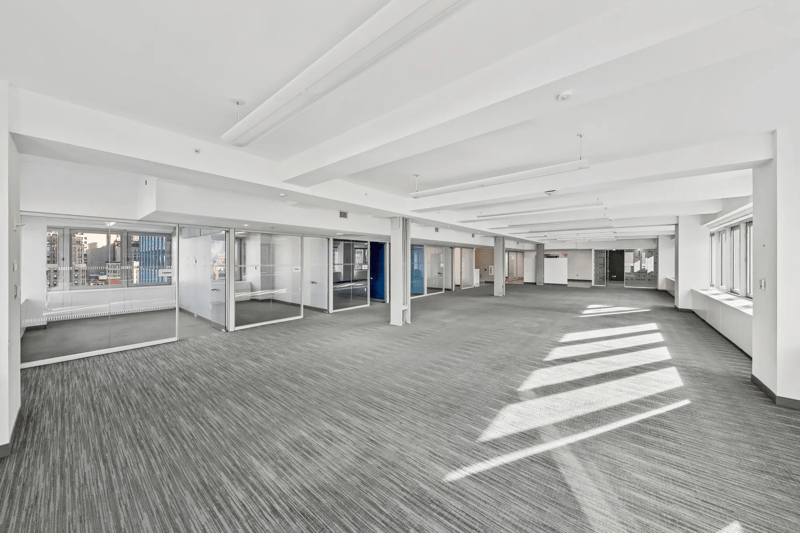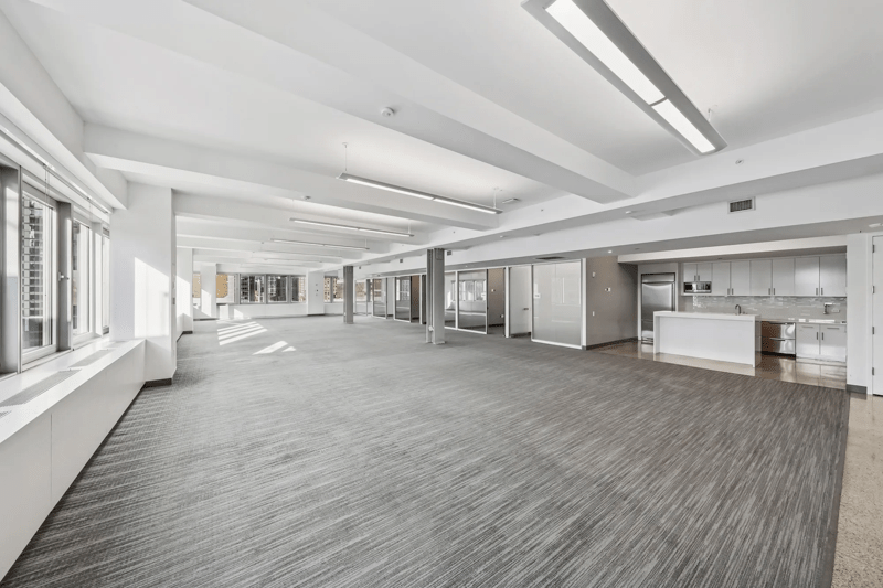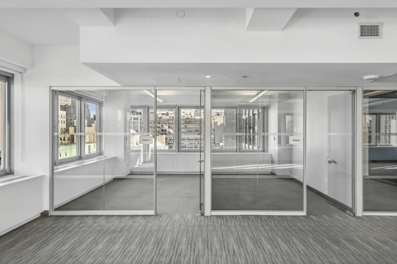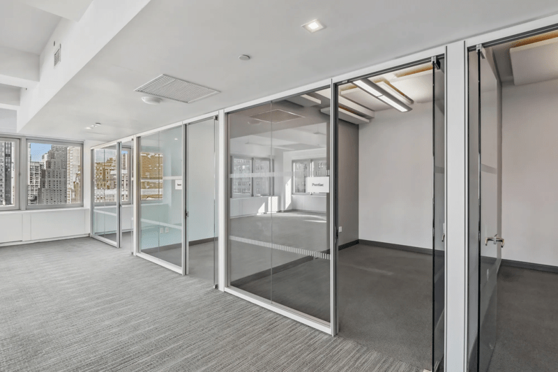 Pre-built with 6 offices, 2 conference rooms, and space for 39 workstations. The space features glass fronted offices and conference rooms with stainless steel trim, a pantry with stainless steel appliances, and spectacular southern views. MERV 13 filters. Equipped with bi-polar ionization. Eligible for ESRT Turnkey Suites services – full scale architectural, furniture, IT and move services from Empire State Realty Trust.