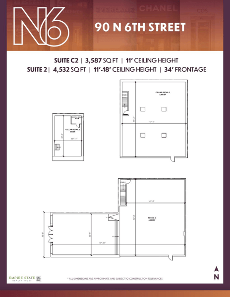 Located on North 6th Street between Wythe Avenue and Berry Street, 90 North 6th Street features over 8K square feet of retail opportunity. The space features ceiling heights of 12 to 17 feet and 33 feet of frontage on North 6th Street. Retailers can lease this space to join the North 6th Street Collection which features high-end brands such as COS, Byredo, Glossier, and Glowbar.