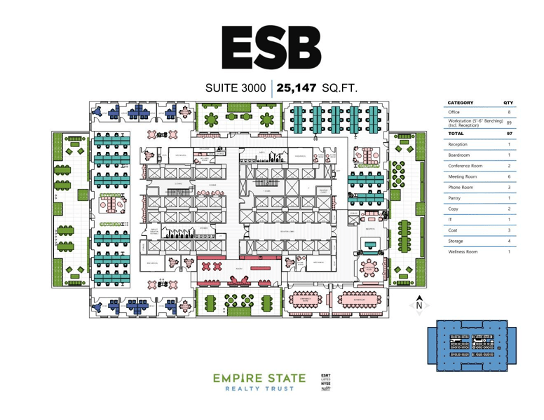 Eligible for ESRT Turnkey Suites services – full scale architectural, furniture, and IT services from Empire State Realty Trust.