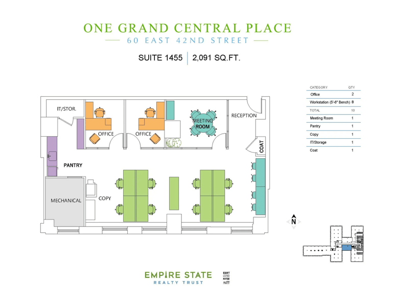 Eligible for ESRT Turnkey Suites services – full scale architectural, furniture, IT and move services from Empire State Realty Trust. Contact us to learn more about getting your tenant into their plug and play prebuilt faster and hassle free.